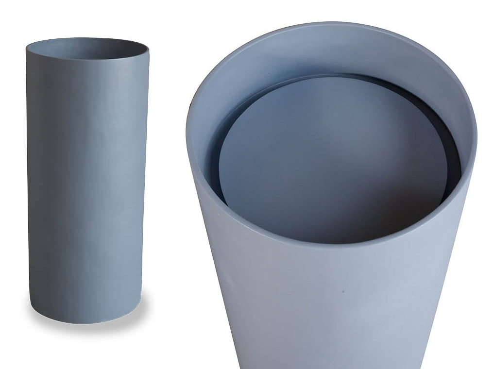 Lavandino da appoggio a forma di Secchio. Realizzato in composto di resina e polveri minerali a basso spessore. Colore bianco e piletta ad uso espositivo inclusa.