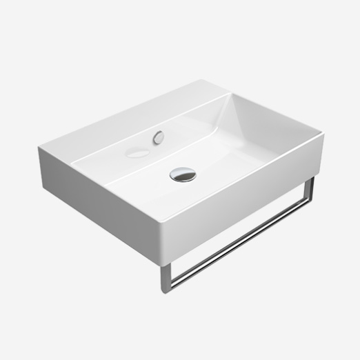 Lavabo senza foro troppopieno predisposto per rubinetteria da parete o su piano.
