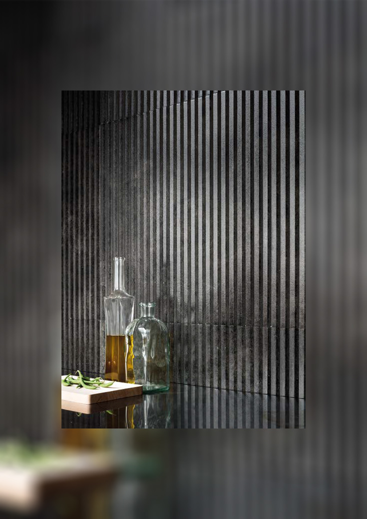 Una collezione di pietra vulcanica naturale e la stessa pietra smaltata con effetti Raku. Ideati in diversi formati, questi materiali abbinati permettono infinite combinazioni e possibilitá di posa, e creano una forza espressiva di grande potenza e raffinatezza, declinata in cinque colori matt da combinare con sei nuance colorate e lucenti. Le tonalitá opache della pietra vulcanica e quelle cangianti della Raku possono essere unite in una inesauribile varietá di soluzioni, conferendo all'ambiente un'atmosfera di contrasti e armonia. I decori tridimensionali regalano ricchezza di movimento, adatti per spazi sorprendenti e dalle atmosfere raffinate.
