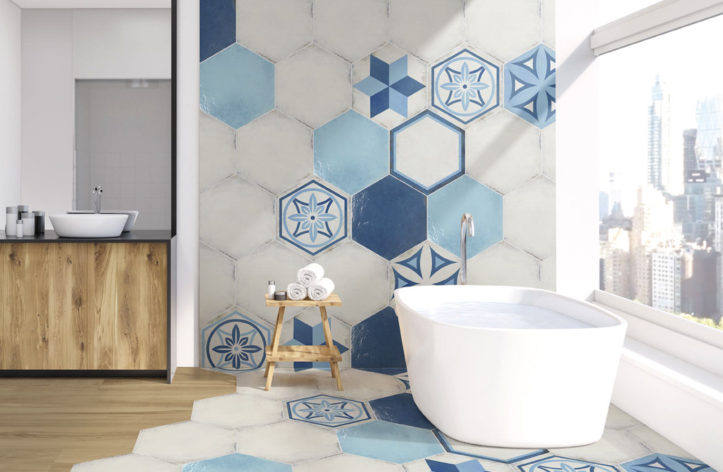 Decori: Mosaico Mix 30x30 / Listello 6,8x22 / Esagona Decoro Mix / Muretto 30x60 (Turchese / Bianco) / Opus 34x34 Antislip R11 (Azzurro / Blu) / Paestum Blu 30x60 / Capaccio Color Mix 30x60 / Color Mix 22x22 / Blu Mix 22x22 / Villa Rosebery 22x22 Antislip R11 / Color Mix 22x22 / Lacco Armeno 34x34 / Maiori 34x34 / Minori 34x34 / Praiano 34x34 / Fascia Costiera 11x34 / Tozzetto Costiera 11x11 / Multicolor 15x60 / Bianco & Nero 15x60